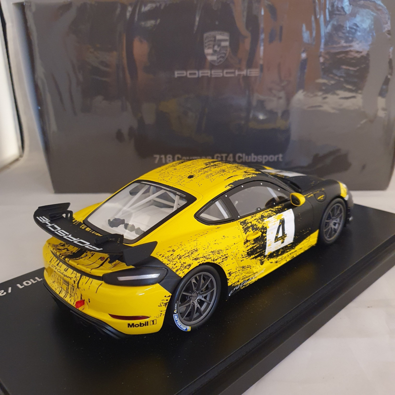 Modèle réduit Porsche de la Porsche 718 Cayman GT4 Clubsport à l'échelle 1:18.