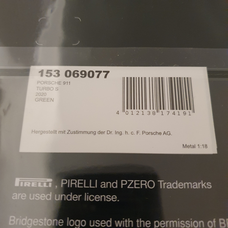 Modèle réduit Porsche 992 Turbo S 2020 à l'échelle 1:18.