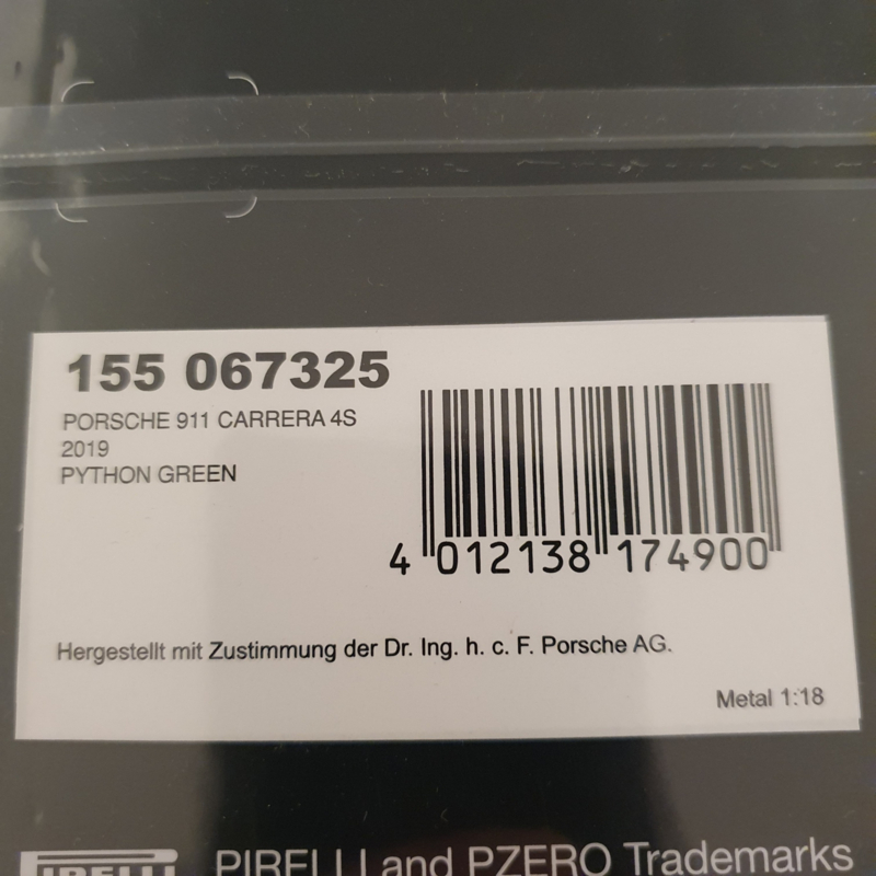 Modèle réduit Porsche de la 992 Carrera 4S 2019 à l'échelle 1:18.