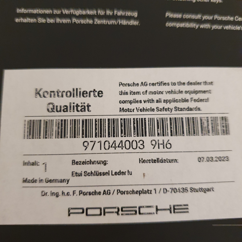 Avec cet étui à clés luxueux en cuir luxor beige, vous protégez votre clé de voiture Porsche avec style. Sans craindre les dommages, vous pouvez mettre votre clé dans votre sac ou votre valise. L'étui à clés Porsche est fabriqué en cuir luxor beige véritable, avec un mousqueton Porsche en acier inoxydable pour pouvoir attacher d'autres clés.