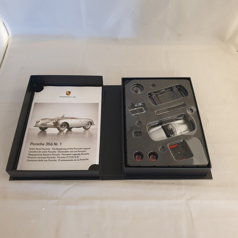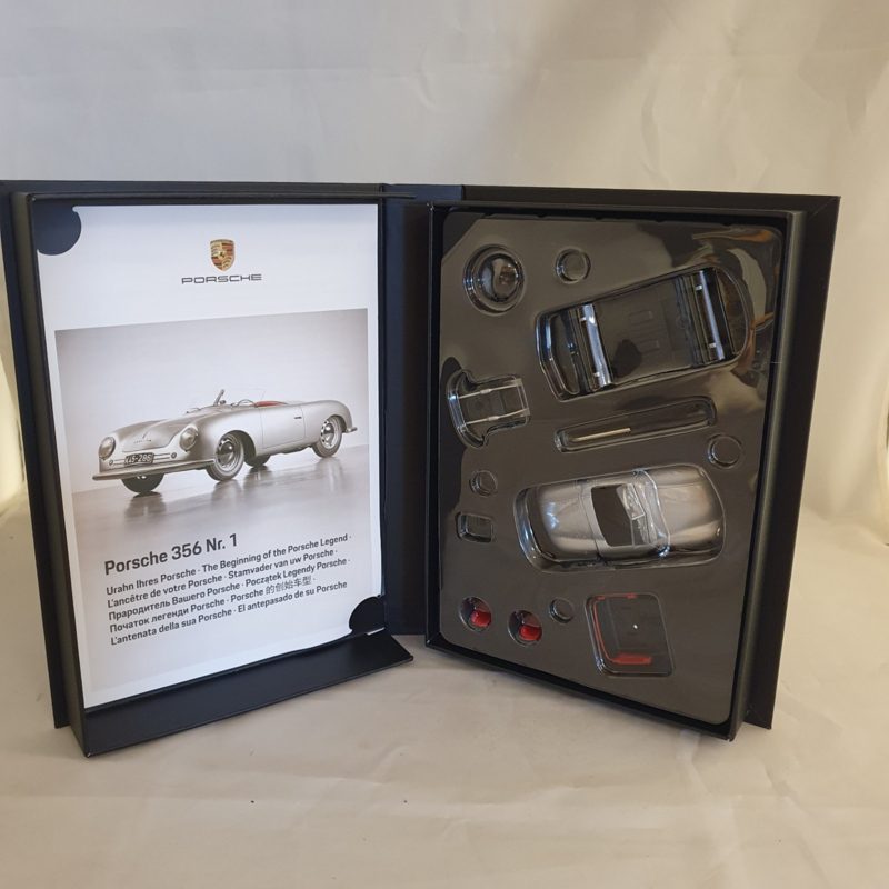 Modèle réduit en métal moulé publié par Porsche, présenté dans un magnifique coffret en forme de livre.